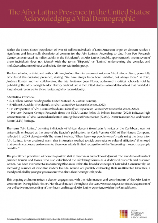 Resources: The Afro-Latino Presence in the United States: Acknowledging a Vital Demographic